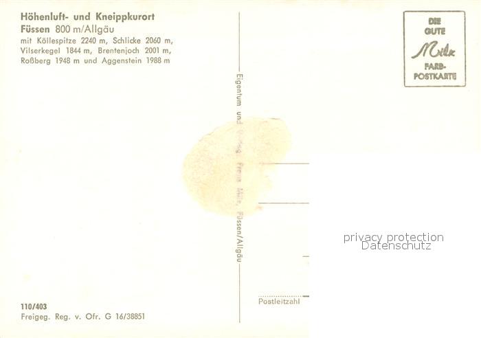73720190 Fuessen Allgaeu Panorama Hoehenluftkurort Kneippkurort Allgaeuer Alpen postalisch nicht gelaufen Fliegeraufnahme Erhaltung siehe scans [FriedD77] KatCode: 11110009777129