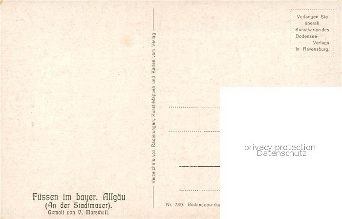 43253720 Fuessen Allgaeu Partie an der Stadtmauer Marschall Kuenstlerkarte postalisch nicht gelaufen Erhaltung siehe scans [FriedD77] KatCode: 11110009777129