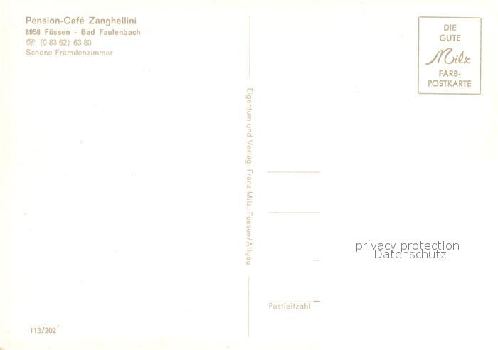73726204 Fuessen Allgaeu Pension-Cafe Zanghellini postalisch nicht gelaufen Erhaltung siehe scans [LiesaD40] KatCode: 11110009777129