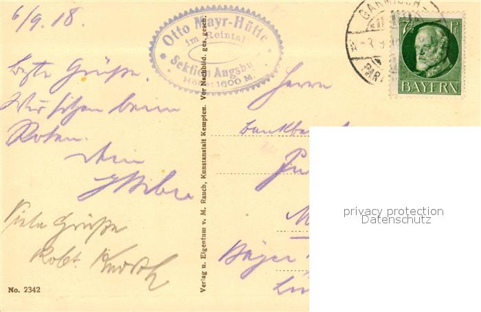 43349794 alte Postkarte Fuessen Allgaeu Rheintal Otto Mayr Huette Allgaeuer Alpen postalisch gelaufen Erhaltung siehe scans [FriedD77] KatCode: 11110009777129