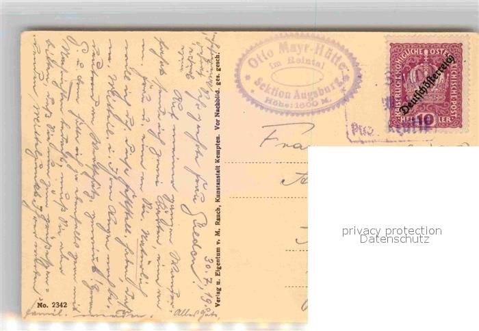 42806311 alte Postkarte Fuessen Allgaeu Rheintal Otto Mayr Huette postalisch gelaufen Erhaltung siehe scans [KathaD81] KatCode: 11110009777129
