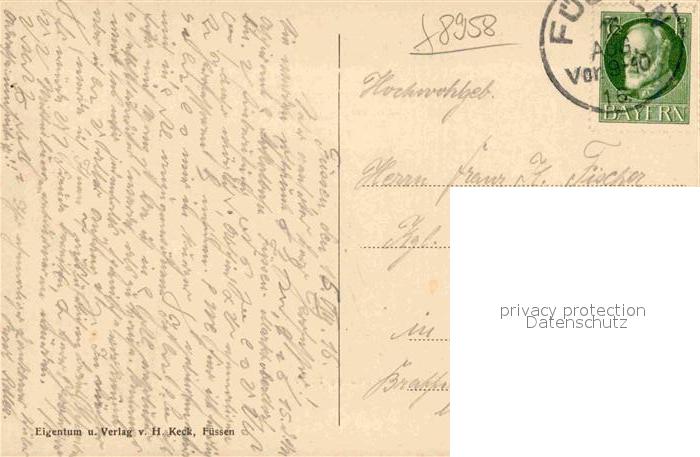 42879066 alte Postkarte Fuessen Allgaeu Saeuling postalisch gelaufen Erhaltung siehe scans [NatalD47] KatCode: 11110009777129