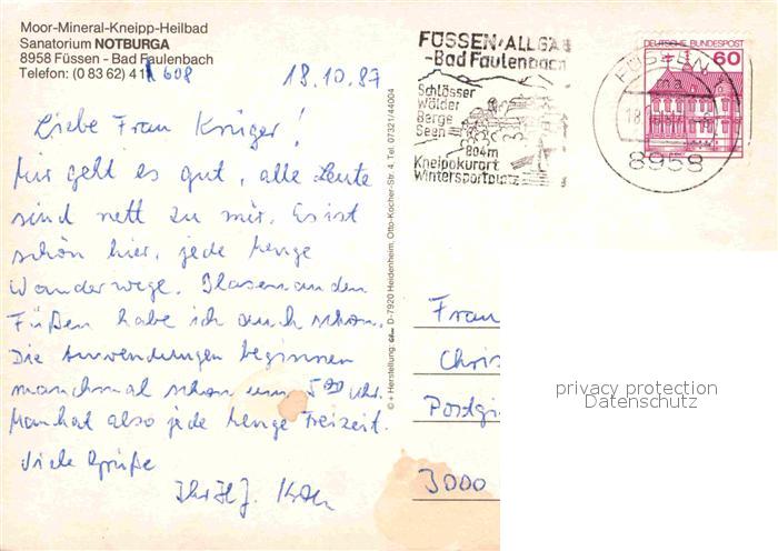 72870477 alte Postkarte Fuessen Allgaeu Sanatorium Notburga postalisch gelaufen Erhaltung siehe scans [LiesaD40] KatCode: 11110009777129