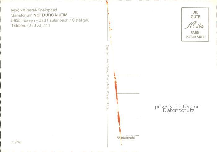 72226925 Fuessen Allgaeu Sanatorium Notburgaheim postalisch nicht gelaufen Erhaltung siehe scans KatCode: 11110009777129