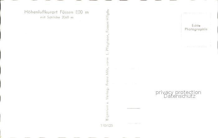 72062152 Fuessen Allgaeu Schlicke postalisch nicht gelaufen Erhaltung siehe scans KatCode: 11110009777129