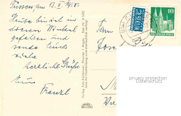 72775194 alte Postkarte Fuessen Allgaeu Schlicke postalisch gelaufen Erhaltung siehe scans [KathaD81] KatCode: 11110009777129