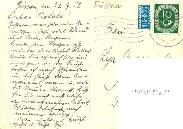 72776488 alte Postkarte Fuessen Allgaeu Schloss postalisch gelaufen Erhaltung siehe scans [KathaD81] KatCode: 11110009777129