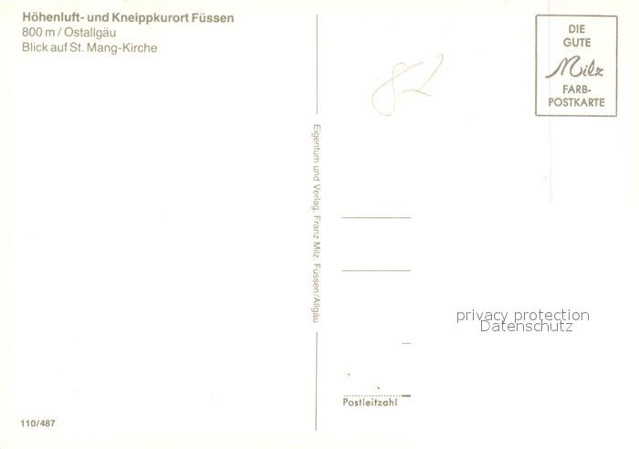 73272844 Fuessen Allgaeu St Mang Kirche postalisch nicht gelaufen Erhaltung siehe scans [WerneD78] KatCode: 11110009777129