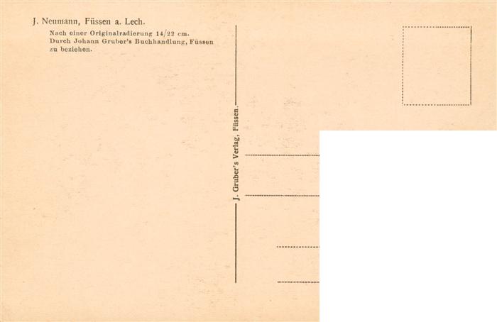 73908132 Fuessen Allgaeu Stadtansicht nach Originalradierung J. Neumann Kuenstlerkarte postalisch nicht gelaufen Erhaltung siehe scans [FriedD77] KatCode: 11110009777129
