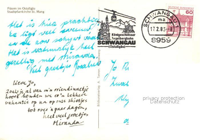 73311750 alte Postkarte Fuessen Allgaeu Stadtpfarrkirche St. Mang postalisch gelaufen Erhaltung siehe scans [LiesaD40] KatCode: 11110009777129