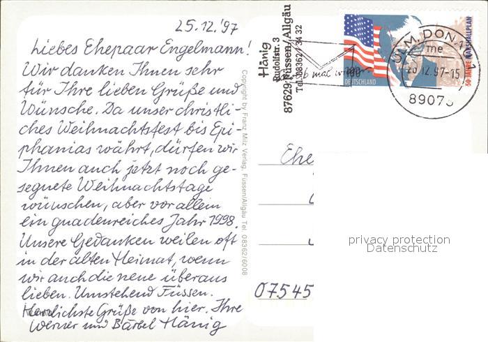 72137314 alte Postkarte Fuessen Allgaeu Strassenpartie zur Weihnachtszeit postalisch gelaufen Erhaltung siehe scans KatCode: 11110009777129