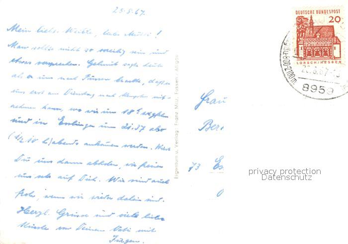73101391 alte Postkarte Fuessen Allgaeu Tegelberghaus Schloss-Neuschwanstein Saeulinghaus Lechfall Bad-Faulenbach postalisch gelaufen Erhaltung siehe scans [LiesaD40] KatCode: 11110009777129