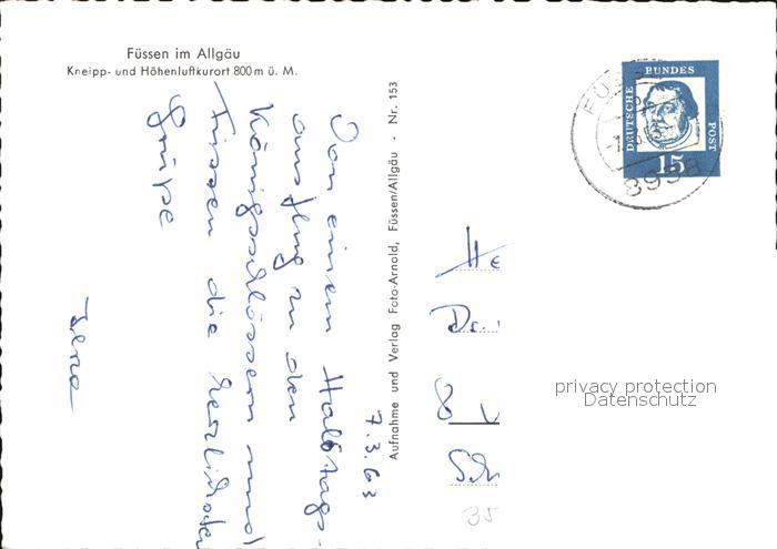 72432713 alte Postkarte Fuessen Allgaeu Teilansicht postalisch gelaufen Erhaltung siehe scans KatCode: 11110009777129