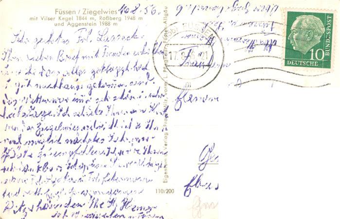 73899427 alte Postkarte Fuessen Allgaeu Ziegelwies mit Vilser Kegel Rossberg und Aggenstein postalisch gelaufen Erhaltung siehe scans [WerneD78] KatCode: 11110009777129