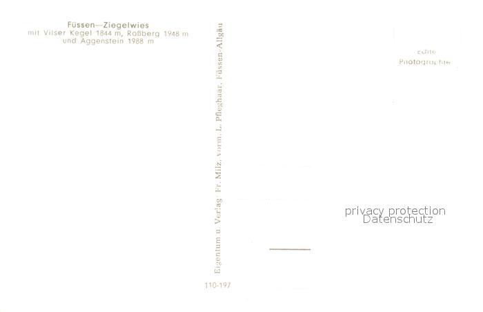 73272271 Fuessen Allgaeu Ziegelwies Vilser Kegel Rossberg Aggenstein postalisch nicht gelaufen Erhaltung siehe scans [KathaD81] KatCode: 11110009777129