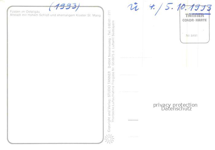 74086736 alte Postkarte Fuessen am Lech Allgaeu Bayern Altstadt mit Hohem Schloss und ehem Kloster St Mang Fliegeraufnahme postalisch gelaufen Erhaltung siehe scans [WerneD78] KatCode: 11110009777129