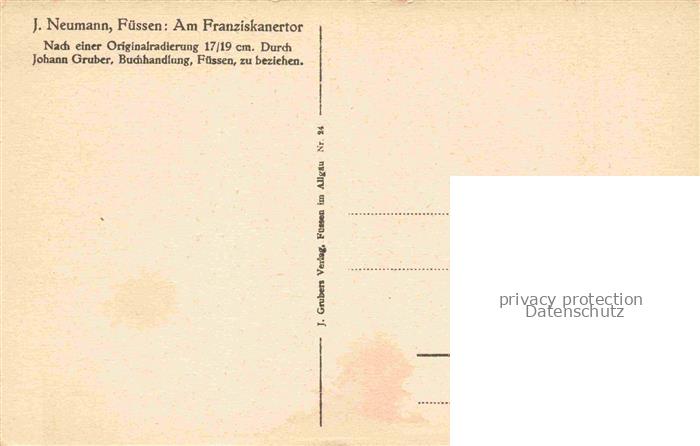74037179 Fuessen am Lech Allgaeu Bayern Am Franziskanertor J. Neumann Kuenstlerkarte postalisch nicht gelaufen Erhaltung siehe scans [FriedD77] KatCode: 11110009777129