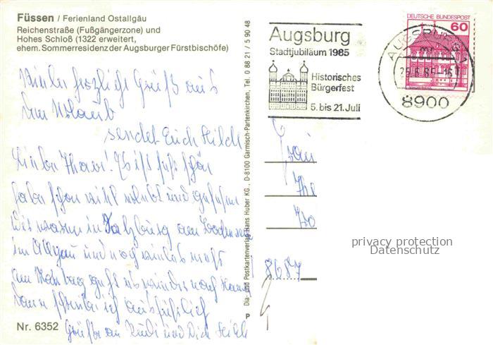 74044314 alte Postkarte Fuessen am Lech Allgaeu Bayern Reichenstrasse Hohes Schloss postalisch gelaufen Erhaltung siehe scans [WerneD78] KatCode: 11110009777129