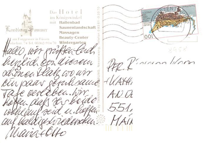 73876382 Fuessen Forggensee Landhaus Sommer Terrasse Hallenbad postalisch gelaufen Erhaltung siehe scans [WerneD78] alte Postkarte Wern Katcode 11110009777129