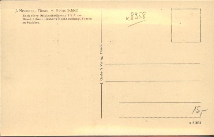 41038754 Fuessen Hohes Schloß [nach Originalradierung] KatCode 11110009777129