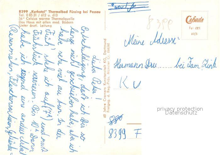 73027816 alte Postkarte Fuessing Bad Fliegeraufnahme Kurhotel postalisch gelaufen Erhaltung siehe scans [KathaD81] KatCode: 11110009275116