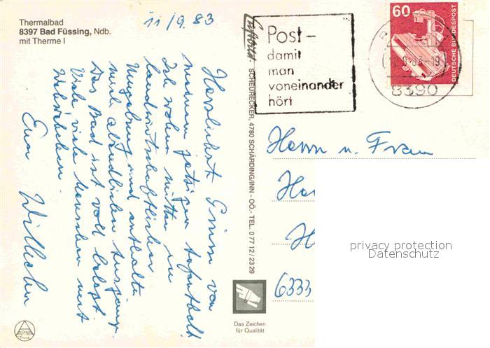 72849231 alte Postkarte Fuessing Bad Fliegeraufnahme Therme postalisch gelaufen Erhaltung siehe scans [KathaD81] KatCode: 11110009275116