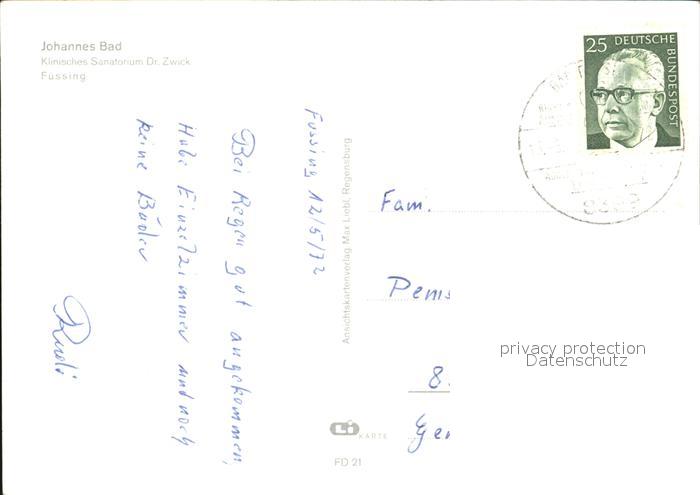 72568197 alte Postkarte Fuessing Bad Johannes Bad Klinisches Sanatorium Dr. Zwick postalisch gelaufen Erhaltung siehe scans [AntonD74] KatCode: 11110009275116
