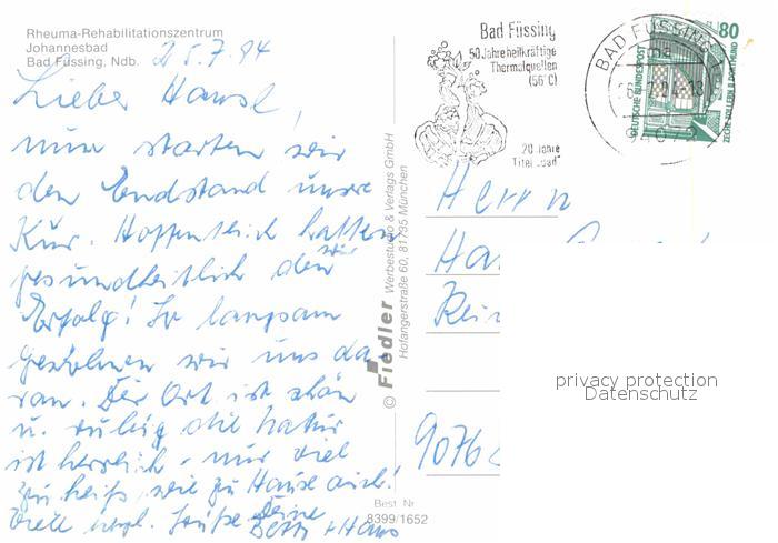 72896299 alte Postkarte Fuessing Bad Johannesbad postalisch gelaufen Erhaltung siehe scans [KathaD81] KatCode: 11110009275116