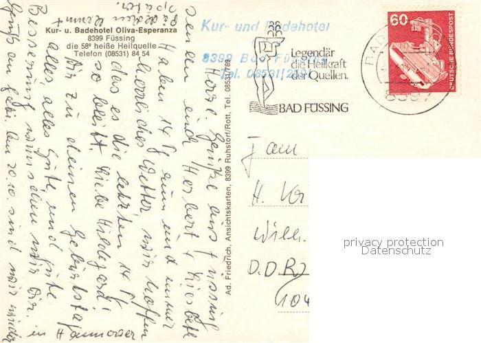 73101497 alte Postkarte Fuessing Bad Kur und Badehotel Oliva Esperanza postalisch gelaufen Erhaltung siehe scans [WerneD78] KatCode: 11110009275116