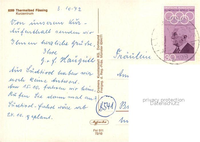73024019 alte Postkarte Fuessing Bad Kurzentrum postalisch gelaufen Erhaltung siehe scans [KathaD81] KatCode: 11110009275116