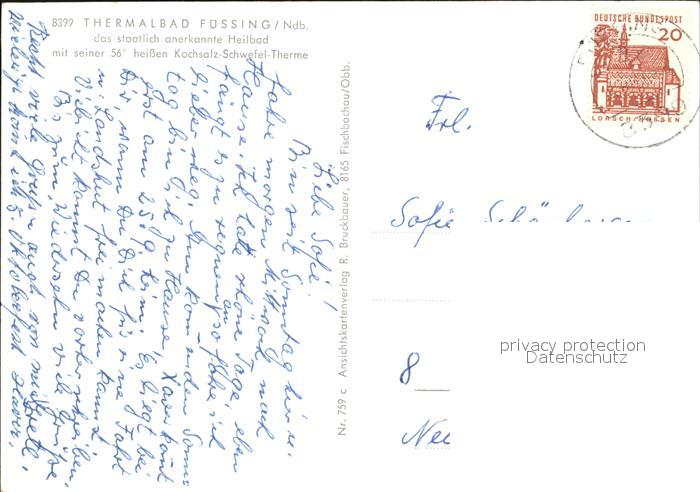 72470627 alte Postkarte Fuessing Bad Thermal Heilbad Kurhaus Kochsalz Schwefel Therme postalisch gelaufen Erhaltung siehe scans KatCode: 11110009275116