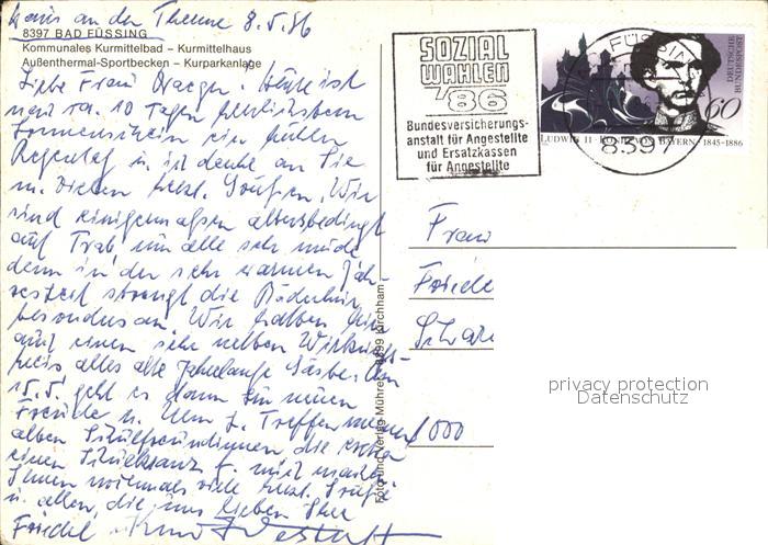 72482041 alte Postkarte Fuessing Bad Thermalbad postalisch gelaufen Erhaltung siehe scans KatCode: 11110009275116
