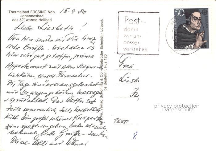 72072036 alte Postkarte Fuessing Bad Thermalbad Johannesbad postalisch gelaufen Erhaltung siehe scans KatCode: 11110009275116