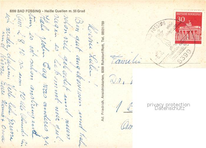 73241776 alte Postkarte Fuessing Bad Thermalbad postalisch gelaufen Erhaltung siehe scans [LiesaD40] KatCode: 11110009275116