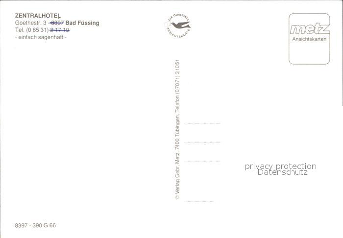 72369493 Fuessing Bad Zentralhotel postalisch nicht gelaufen Erhaltung siehe scans KatCode: 11110009275116