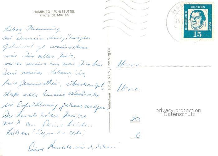73731707 alte Postkarte Fuhlsbuettel Kirche St.Marien postalisch gelaufen Erhaltung siehe scans [LiesaD40] KatCode: 11110002000000