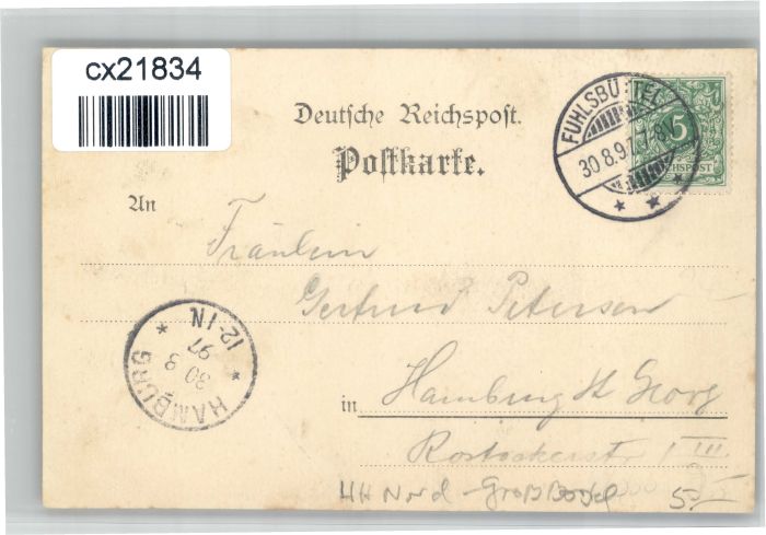 30738496 alte Postkarte Fuhlsbuettel Stempelabschlag]Borsteler Jaeger x postalisch gelaufen KatCode: 11110002000000