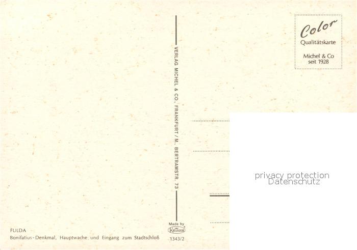 73271683 Fulda Bonifatius Denkmal Stadtschloss postalisch nicht gelaufen Erhaltung siehe scans [KathaD81] KatCode: 11110006631009
