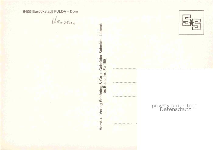 72916960 Fulda Dom Barockstadt postalisch nicht gelaufen Erhaltung siehe scans [FriedD77] KatCode: 11110006631009