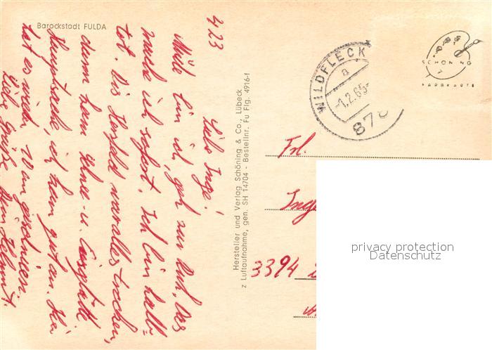 73608921 alte Postkarte Fulda Fliegeraufnahme postalisch gelaufen Erhaltung siehe scans [WerneD78] KatCode: 11110006631009