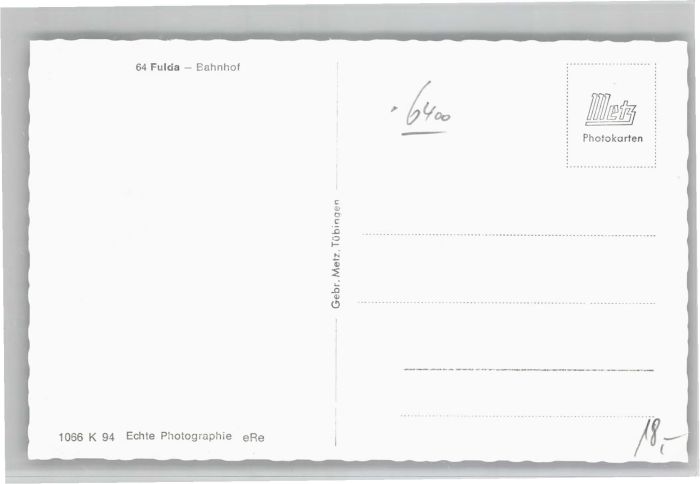 40692989 FULDA Hessen Bahnhof postalisch nicht gelaufen Alte Ansichtskarte Postkarte Katcode 11110006631009