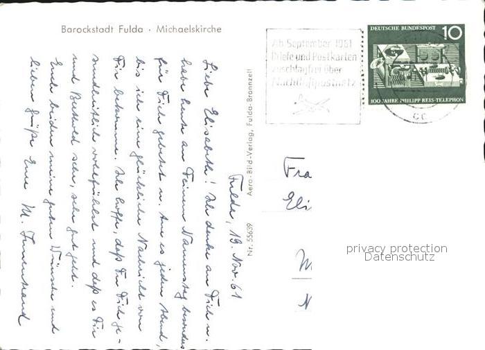 72550611 alte Postkarte FULDA Hessen Barockstadt Michaelskirche postalisch gelaufen Erhaltung siehe scans [KathaD79] KatCode: 11110006631009