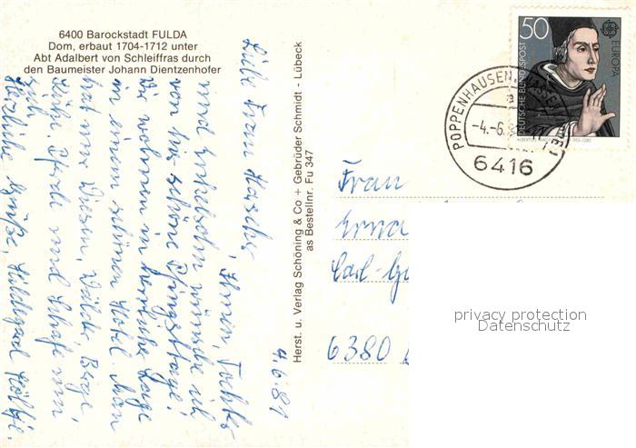 72752375 alte Postkarte FULDA Hessen Dom postalisch gelaufen Erhaltung siehe scans [AndreD76] KatCode: 11110006631009