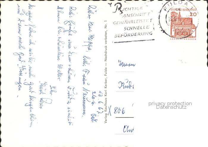 72402986 alte Postkarte FULDA Hessen Dom postalisch gelaufen Erhaltung siehe scans KatCode: 11110006631009
