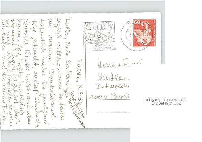 71933452 alte Postkarte FULDA Hessen Fiora Stadtschloss postalisch gelaufen Erhaltung siehe scans KatCode: 11110006631009