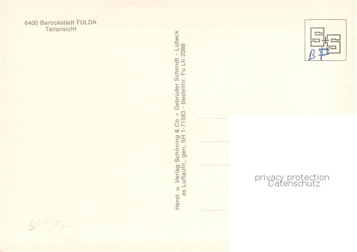73765607 FULDA Hessen Fliegeraufnahme postalisch nicht gelaufen Erhaltung siehe scans [WerneD78] Wern Katcode 11110006631009