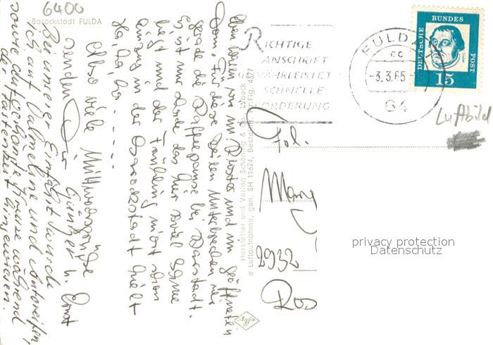 73705605 FULDA Hessen Fliegeraufnahme postalisch gelaufen Erhaltung siehe scans [LiesaD40] alte Postkarte Lies Katcode 11110006631009