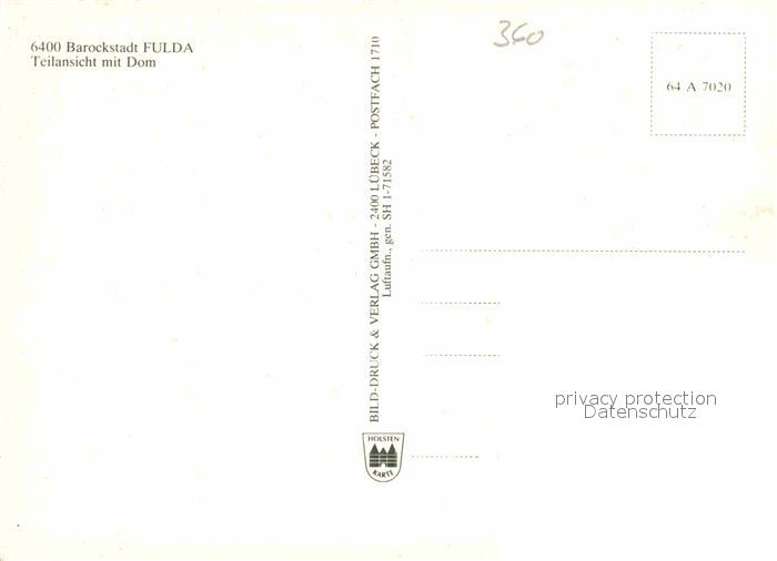 72636174 FULDA Hessen Fliegeraufnahme mit Dom postalisch nicht gelaufen Erhaltung siehe scans [WerneD78] KatCode: 11110006631009