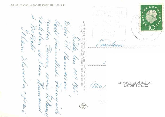 72695278 alte Postkarte FULDA Hessen Fliegeraufnahme Schloss Fasanerie Adolphseck postalisch gelaufen Erhaltung siehe scans [LiesaD40] KatCode: 11110006631009