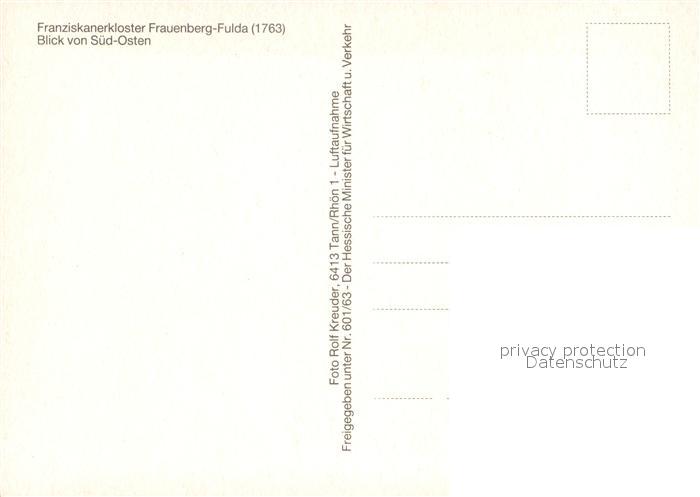 73669304 FULDA Hessen Franziskanerkloster Frauenberg Fliegeraufnahme postalisch nicht gelaufen Erhaltung siehe scans [WerneD78] Wern Katcode 11110006631009